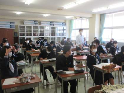 音楽の授業です。 「今日は、合唱曲の歌唱テストを行います。」 「はい!!」