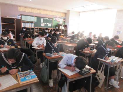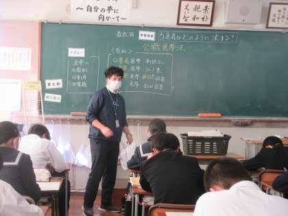 社会の授業です。 選挙での当選者は、どのように決まるのかを学習しました。