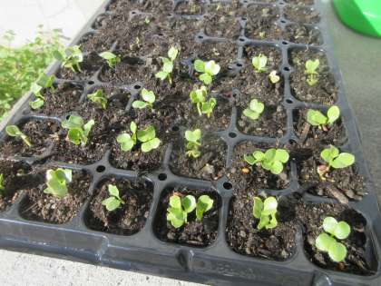 小さな芽は、リーフレタスと大根と細ネギです。