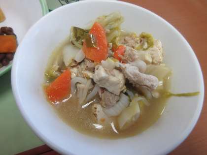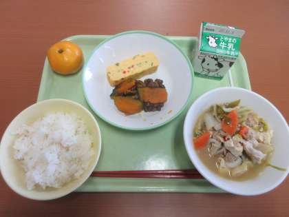 今日の給食 公開日 2022/10/28 更新日 2022/10/28 給食 鍋がおいしく感じられる季節になりました。 〜鍋が好きですか? ごはん 牛乳 千草焼き かぼちゃのいとこ煮 はくさいなべ みかん