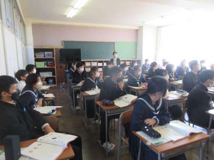 英語の授業です。 ALTのレイ先生と一緒に学習しました。
