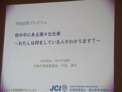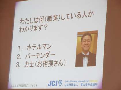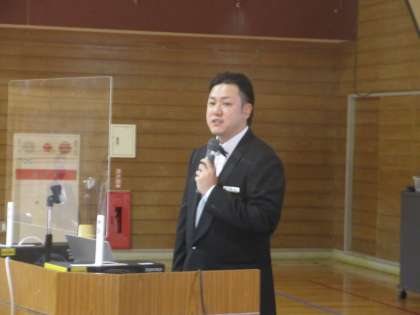次に、ホテルグランテラス富山の中松孝介様から、ホテルマンの仕事内容や、どうして自分がホテルマンを目標にしたかなどをお話しいただきました。