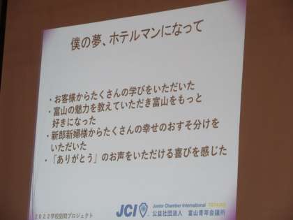 夢をかなえる大変さや、夢をかなえても、なお次の目標をもつことの大切さを教わりました。
