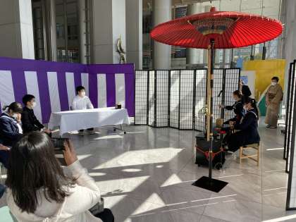 富山市中学校文化祭 公開日 2022/10/29 更新日 2022/10/29 北中NEWS 本日、オーバードホールで開催されている富山市中学校文化祭に、本校から多数の生徒が参加しています。 写真は、茶道部の発表です。