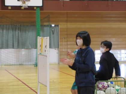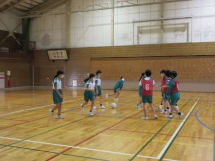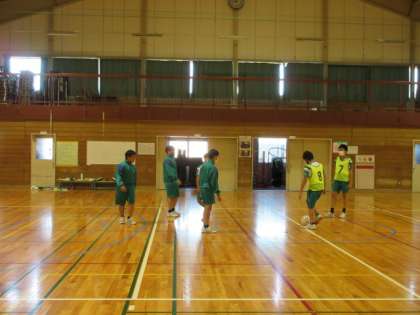 保健体育の授業です。 サッカーに取り組みました。 「ナイス・シュート!!」