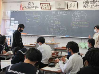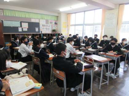 道徳の授業です。 今日は、担任の先生ではない先生との授業です。 自分の考えを発表していました。