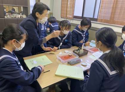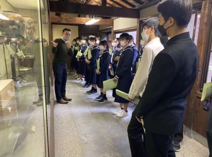 2学年 金沢校外学習 その13 公開日 2022/11/01 更新日 2022/11/01 第2学年 4組は九谷光仙窯で九谷焼絵付体験をしました。 九谷焼についてお話を聞いたあと、線描き体験をしました。