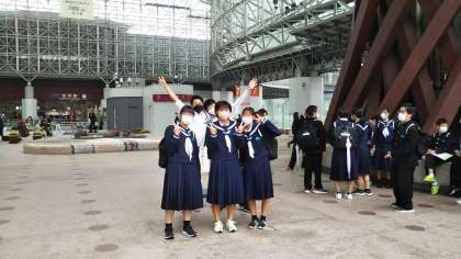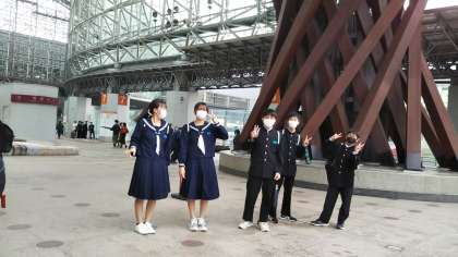 班別学習のスタート地点は2箇所!! こちらは、金沢駅スタートチームの様子です。