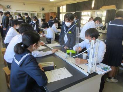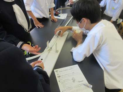 理科の授業です。 仕事と力学的エネルギーの関係を学習しました。