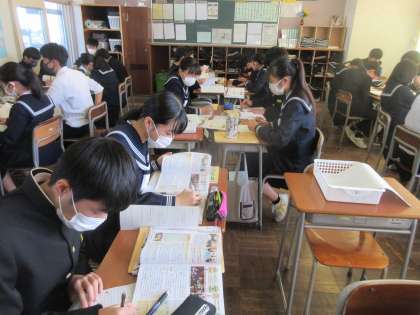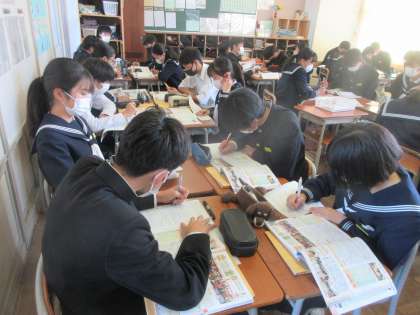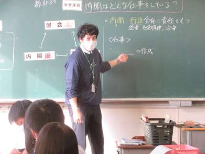 社会の授業です。 内閣の仕事を学習しました。