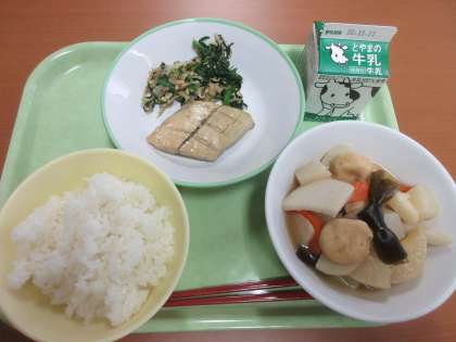 これからの季節、やっぱり「おでん」は外せません!! ごはん 牛乳 鰆の幽庵焼き 入り大豆和え おでん