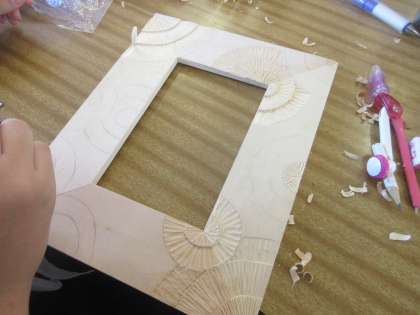 写真立ての木彫です。