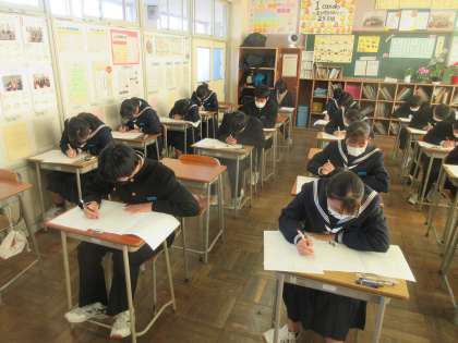 2年生は、社会と数学の調査です。 カリカリカリ・・・。シャーペンの音しか聞こえません。