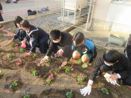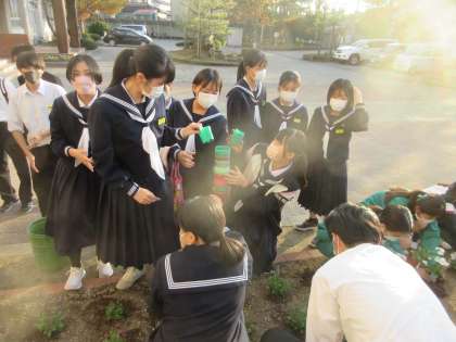 「これくらい穴を掘ればいいのかなぁ・・・。」 「元気に育つかなぁ・・・。」