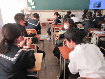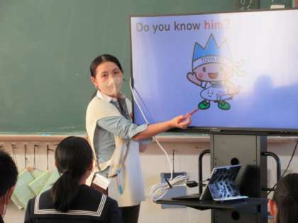 英語の授業です。 「Do you know him?」 「Yes,I do.」 ペアで練習中。