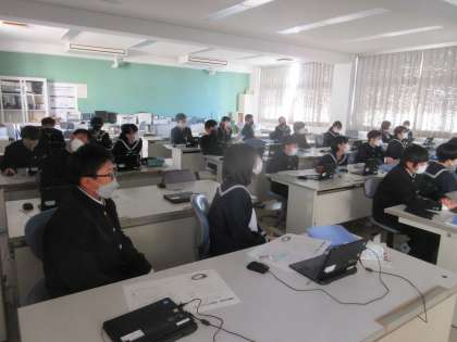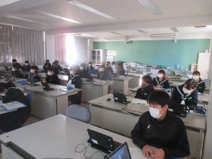 技術・家庭科の授業です。 情報通信ネットワークの仕組みを学習しました。