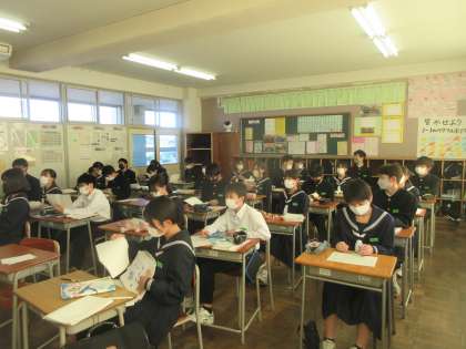 国語の授業です。 竹取物語を学習しました。冒頭部分は覚えたかな!?