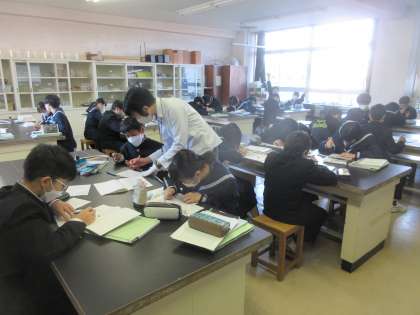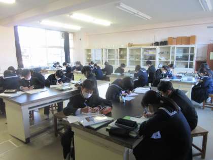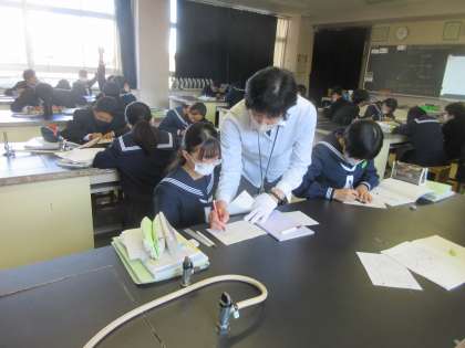 理科の授業です。 鏡の中に、物体があるように見えるのはなぜかを学習しました。
