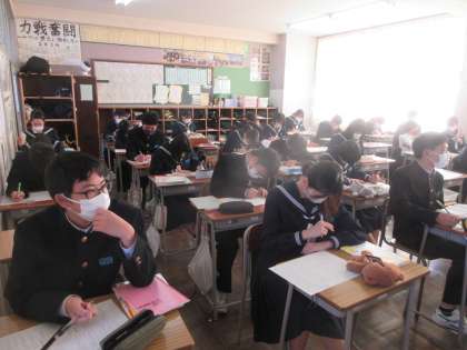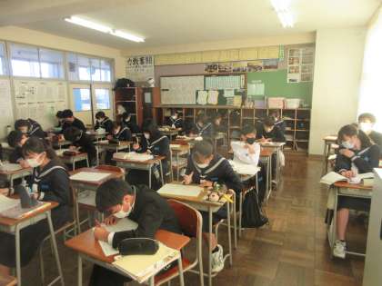 国語の授業です。 復習の課題に取り組みました。テスト前ですし、真剣です!!