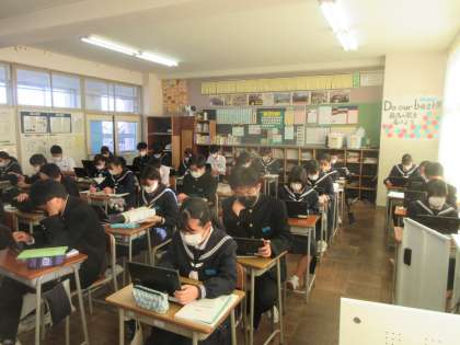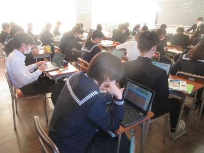 理科の授業です。 クロムブックを使って、練習問題に取り組みました。