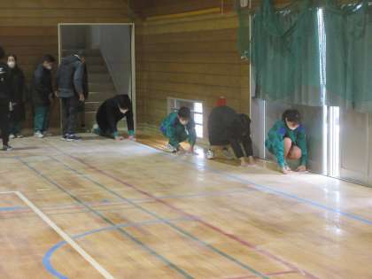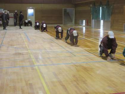 多くの部活動生が、雑巾での床ふきを手伝ってくれました。