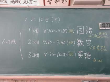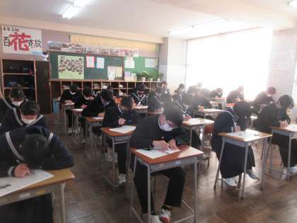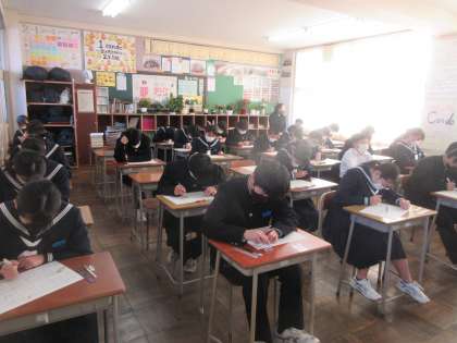 今日は、国語、数学、英語のテストを行いました。