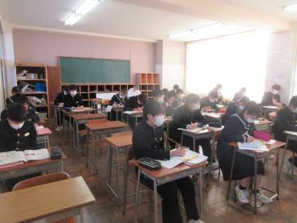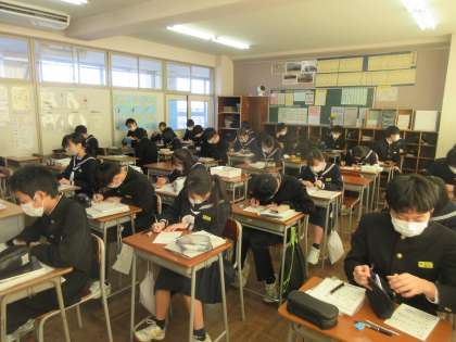 3-3英語と3-4技術・家庭科の授業です。 今日も、私立高校の推薦入試が行われました。