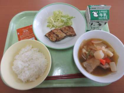 今日の給食 公開日 2023/01/13 更新日 2023/01/13 給食 豚肉と大根の煮込みは、それぞれのうまみがしみ出ています。 ごはん 牛乳 魚のえごまだれ ゆでキャベツ 豚肉と大根の煮込み 穀物ふりかけ