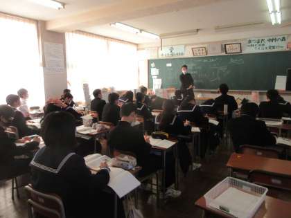2−1理科、2−3社会、2−4英語の授業です。 先日の休み明けテストの解説等を行いました。