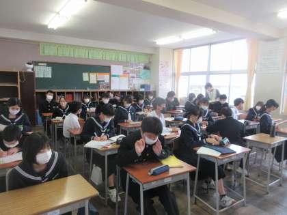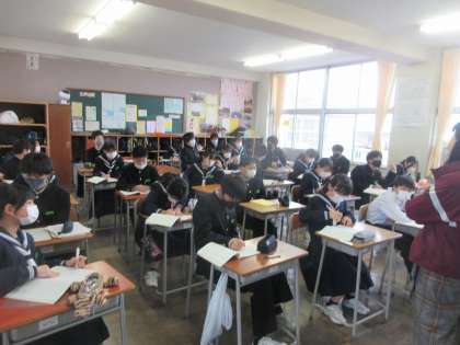 1−1、1−2学活の時間です。 配布物を配ったり、生活ノート書いたりします。