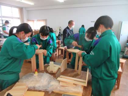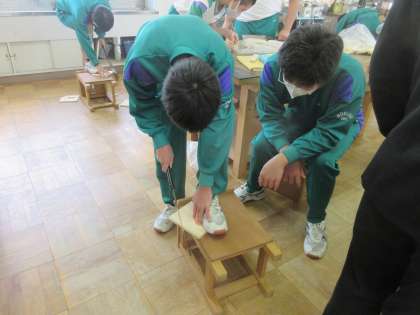 2−4技術・家庭科の授業です。 本立てが仕上がってきました。