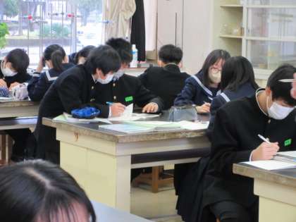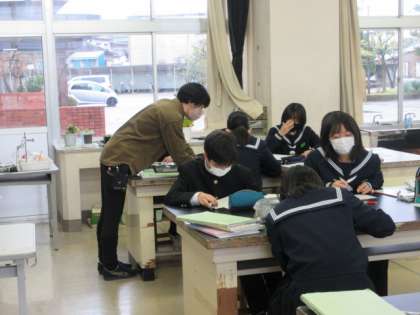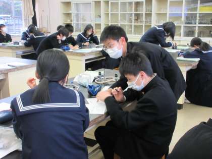 1−3理科の授業は、お互いに教え合って学んでいます。
