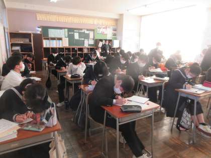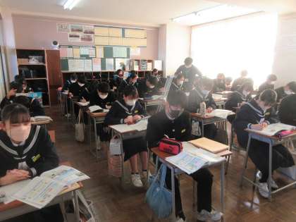 3−3技術・家庭科、3−4社会の授業です。 3−3では、幼児のための絵本をつくりました。