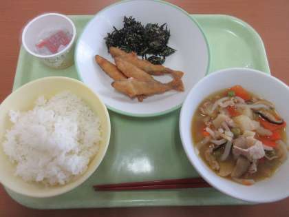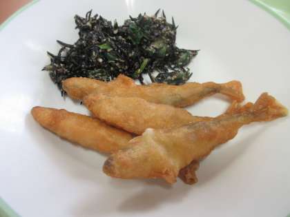納豆を食べて、粘り強く学習に取り組みましょう。 ごはん 牛乳 ひじきのごま和え わかさぎのフリッター 豚肉の南蛮煮 納豆