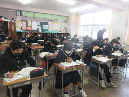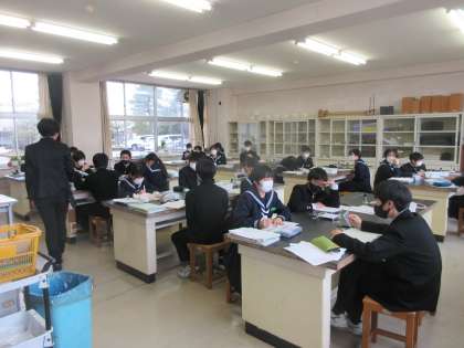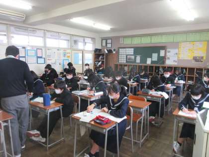 1−3数学、1−4理科、1−5国語の授業です。 ちらちら欠席者がいますが、みんな元気です。