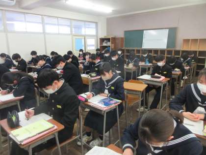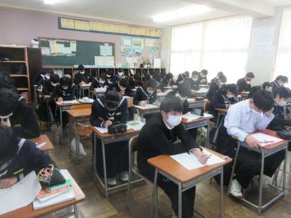 3−1国語、3−3理科、3−4英語の授業です。 外は雪模様ですが、熱く学習しています。