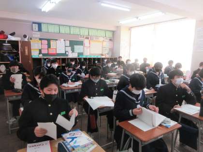 1−2数学、1−4数学、1−5国語の授業です。 欠席者が減ってきました。感染対策を徹底しましょう。