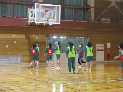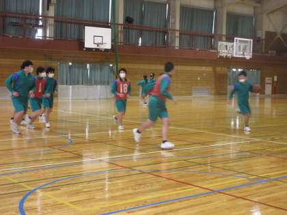 3−1保健体育の授業です。 バスケットボールです。必死にボールを追いかけています。