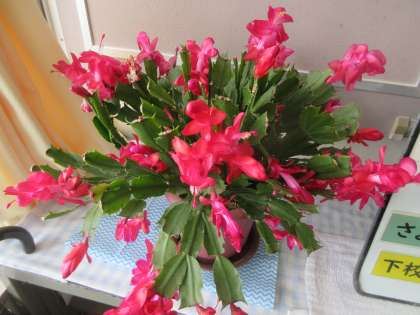 校内のいたるところにある「シャコバサボテン」が満開です。
