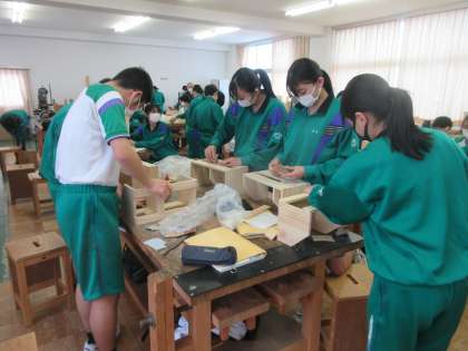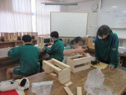 2−1技術・家庭科の授業です。 本立てが仕上がってきました。