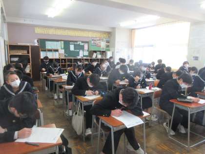 3−3数学、3−4英語の授業です。 黙々と練習問題に取り組みます。