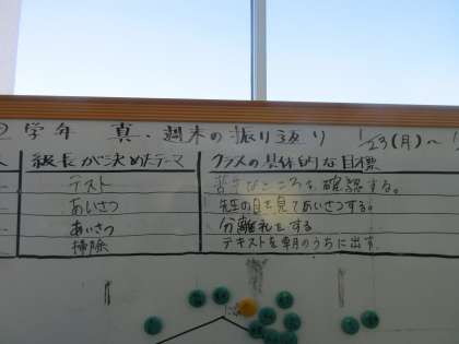 2年生は、毎週、その週の振り返りを行い、改善点を考えます。