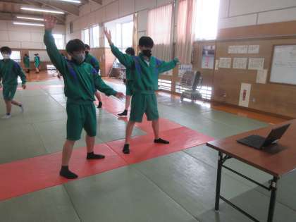 1−4保健体育の授業です。 動画を見ながらダンスの練習です。