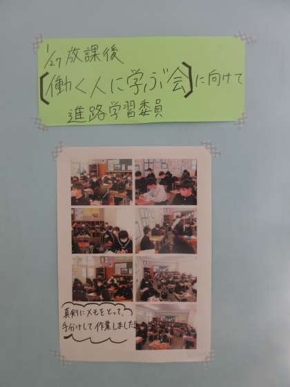 1年生は、2月9日に、進路学習として「働く人に学ぶ会」を予定しています。様々な職業の方々に、講演していただきます。