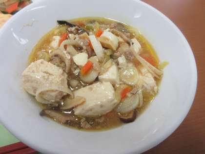 マーボー豆腐は、そのまま食べても、どんぶりにしてもおいしいです。 ごはん 牛乳 かにたま 華風和え マーボー豆腐