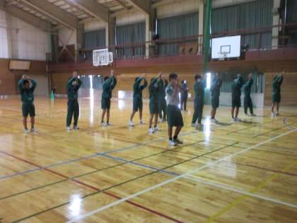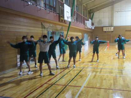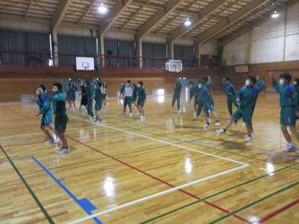 動画を見ながら、ダンスの練習です。男女共に、ノリノリです。