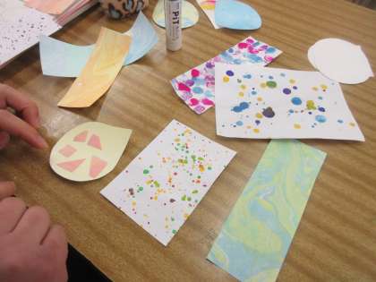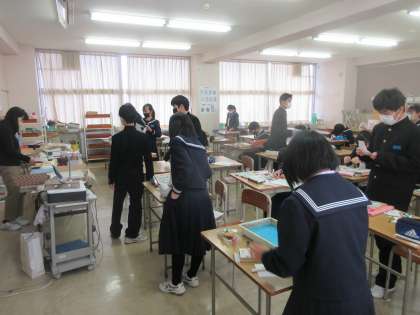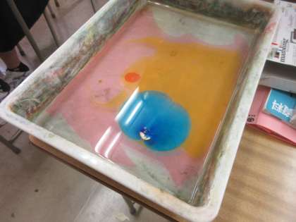 2−2美術の授業です。 モダンテクニックを使って、作品をつくります。
