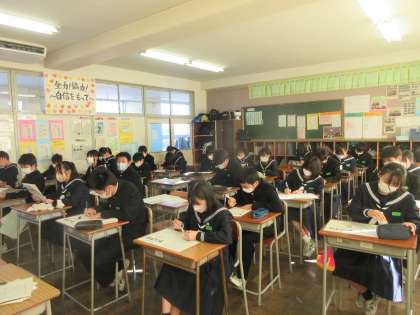 1−2国語、1−3数学の授業です。 落ち着いた雰囲気です。