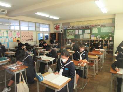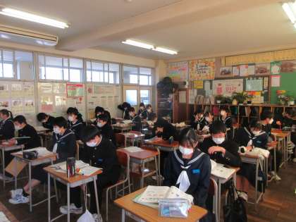 2−1英語、2−2理科、2−3技術・家庭科の授業です。 さすが、3年生への0学期、集中しています。