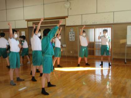 1−2保健体育の授業です。 まだまだ動きはぎこちないですが、楽しそうです。